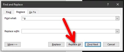 Abis masukin kodenya, tinggal klik tombol Replace All. Nah, dalam hitungan detik, semua gambar di dokumen lo bakal langsung hilang kayak disapu pake jurus ninja. - Selesai!