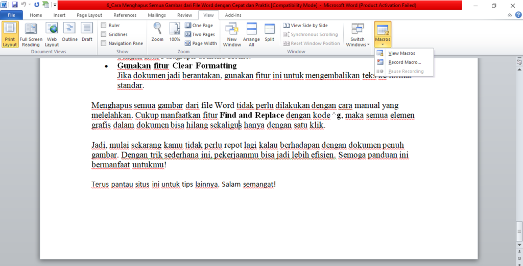 Yes, segampang itu, gaes. Sekarang file Word lo udah bersih tanpa gambar.