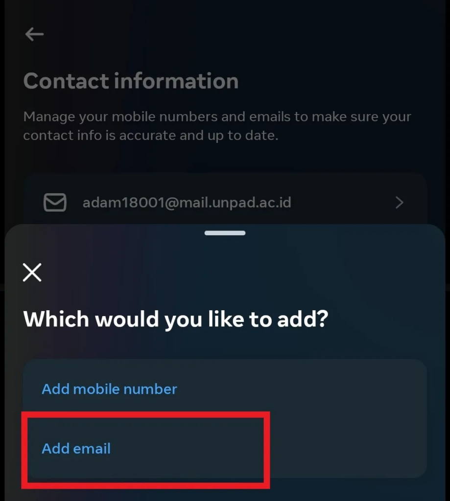 Dari sini, muncul pop-up. Pilih aja Add Email. - Masukin alamat email baru